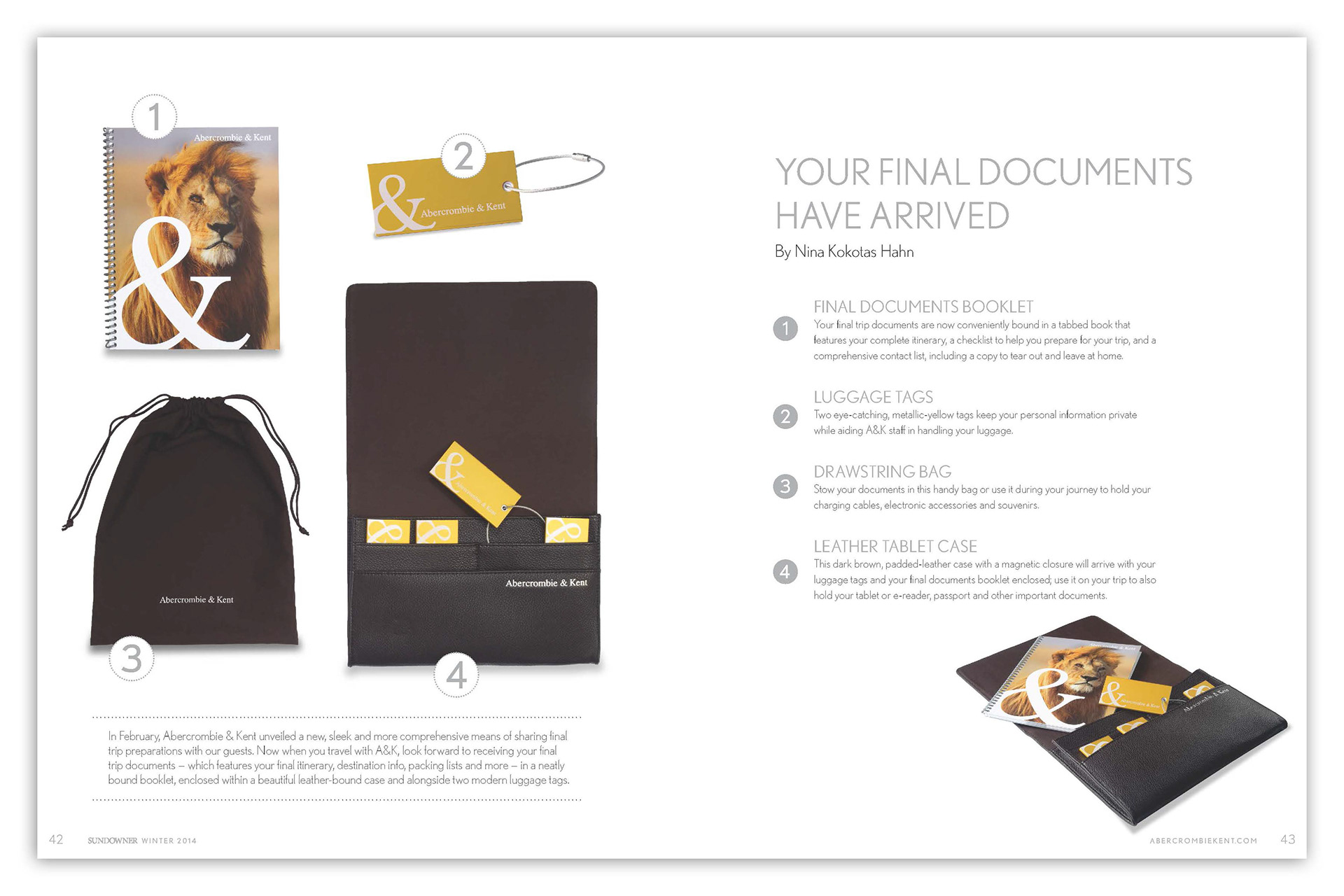 The luxury travel company sends out a quarterly, glossy magazine called Sundowner to its clients. The stories, photos, and appealing design are intended to inform and inspire the well-heeled traveler.